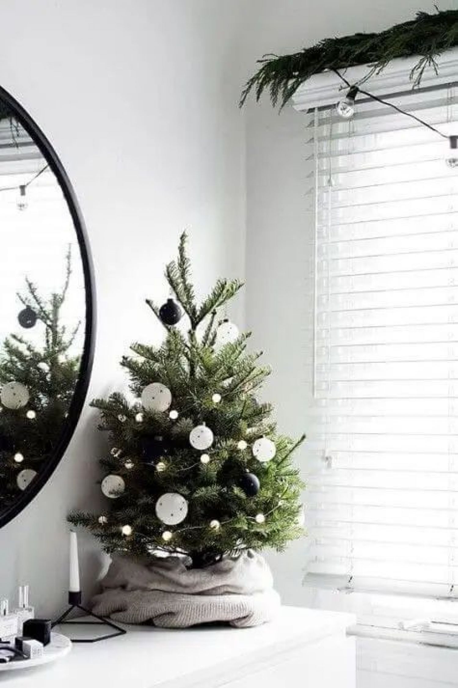 Opte por árvores menores ou até mesmo versões de parede, como adesivos decorativos, galhos secos decorados, bolas douradas ou prateadas, que criam um toque sofisticado e trazem harmonia ao ambiente.